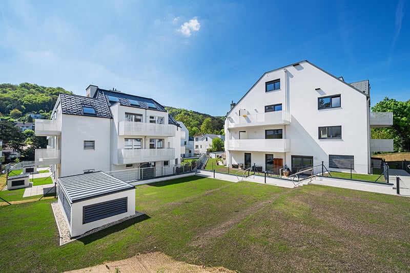 In Traumlage am Ölberg in Klosterneuburg entstanden 44 Wohnungen mit 1 bis 4 Zimmer Wohnungen mit Größen von 43 m² bis 101 m², alle inkl. Freiflächen wie Garten, Terrasse oder Balkon – aufgeteilt auf 3 getrennte Gebäude. Dadurch wird der gemütliche Charakter, der in dieser Umgebung vorherrscht, beibehalten. Die grüne Umgebung lädt ein zum Genießen und Sport treiben. Wien erreicht man in 10 Minuten mit dem Auto.
