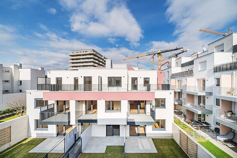 Die hier entstandenen Mietwohnungen mit 36m² bis 73m² bzw. 1- bis 3-Zimmer verfügen alle über privaten Außenflächen wie Garten, Balkon, Terrasse oder Loggia. Die insgesamt 37 Wohnungen zeichnen sich durch sehr viele unterschiedliche, durchdachte Grundrisse aus, so dass sowohl Singles als auch größere Familien geeigneten Raum zum Leben finden können. Die Wohnungsgrundrisse sind von kompakt bis großzügig geplant.