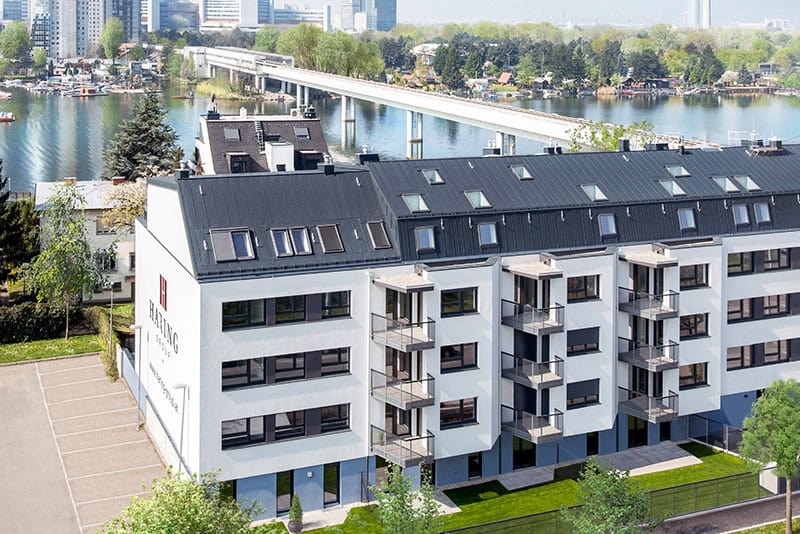 Mit Blick auf die Alte Donau! Die moderne Architektur, die durchdachte Planung der Wohnungsgrundrisse und die sehr gute Lage machen das Projekt vor allem für Endkunden sehr interessant. Jede der Eigentums- bzw. Vorsorgewohnungen hat eine private Freifläche: Garten, Terrasse, Loggia oder Balkon.