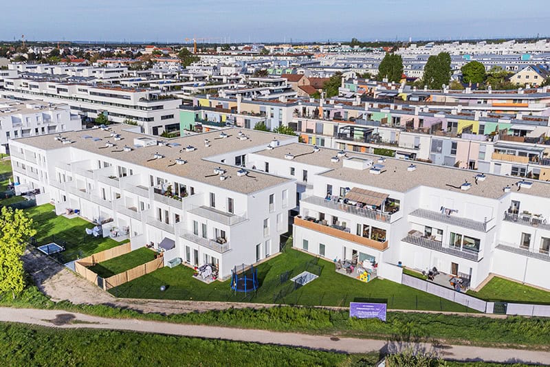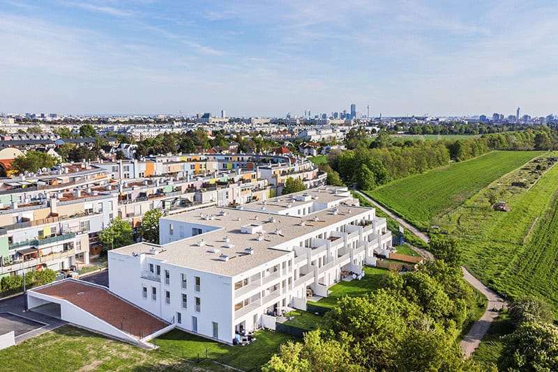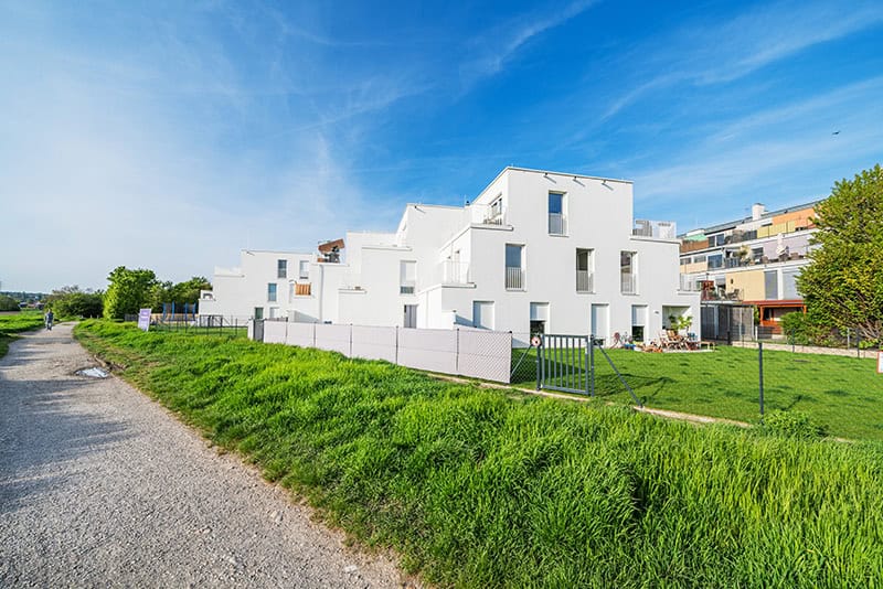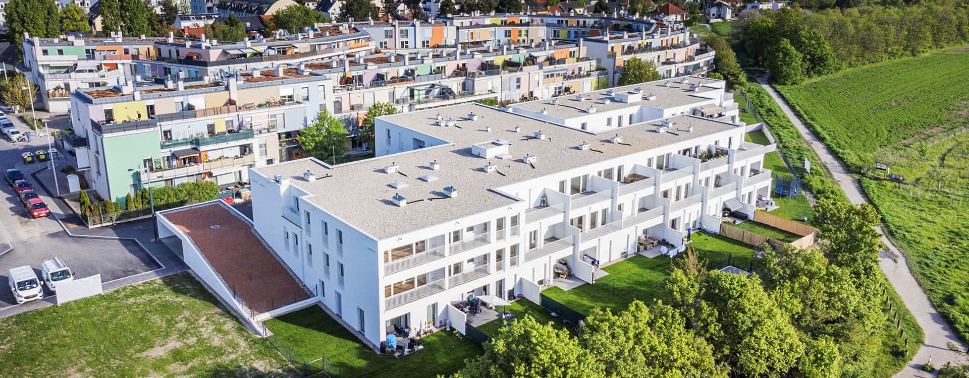 Am Stadtrand des 21. Wiener Bezirks entstanden am Maximilian-Reich-Weg 3 70 Eigentumswohnungen in den Größen 33m² bis 93m². Die Wohnungen umfassen 2 bis 4 Zimmer und verfügen alle über private Freiflächen wie Garten, Terrasse oder Loggia.