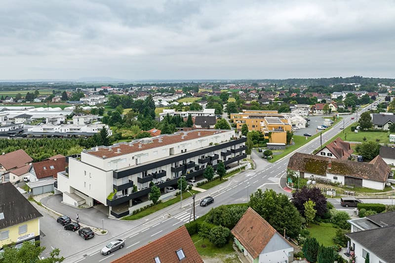 ADRESSE: Packerstraße 5, 8054 Seiersberg-Pirka WOHNFLÄCHE: 64 Wohnungen mit gesamt ca. 4.525 m² Wohnnutzfläche FERTIGSTELLUNG: Dezember 2018